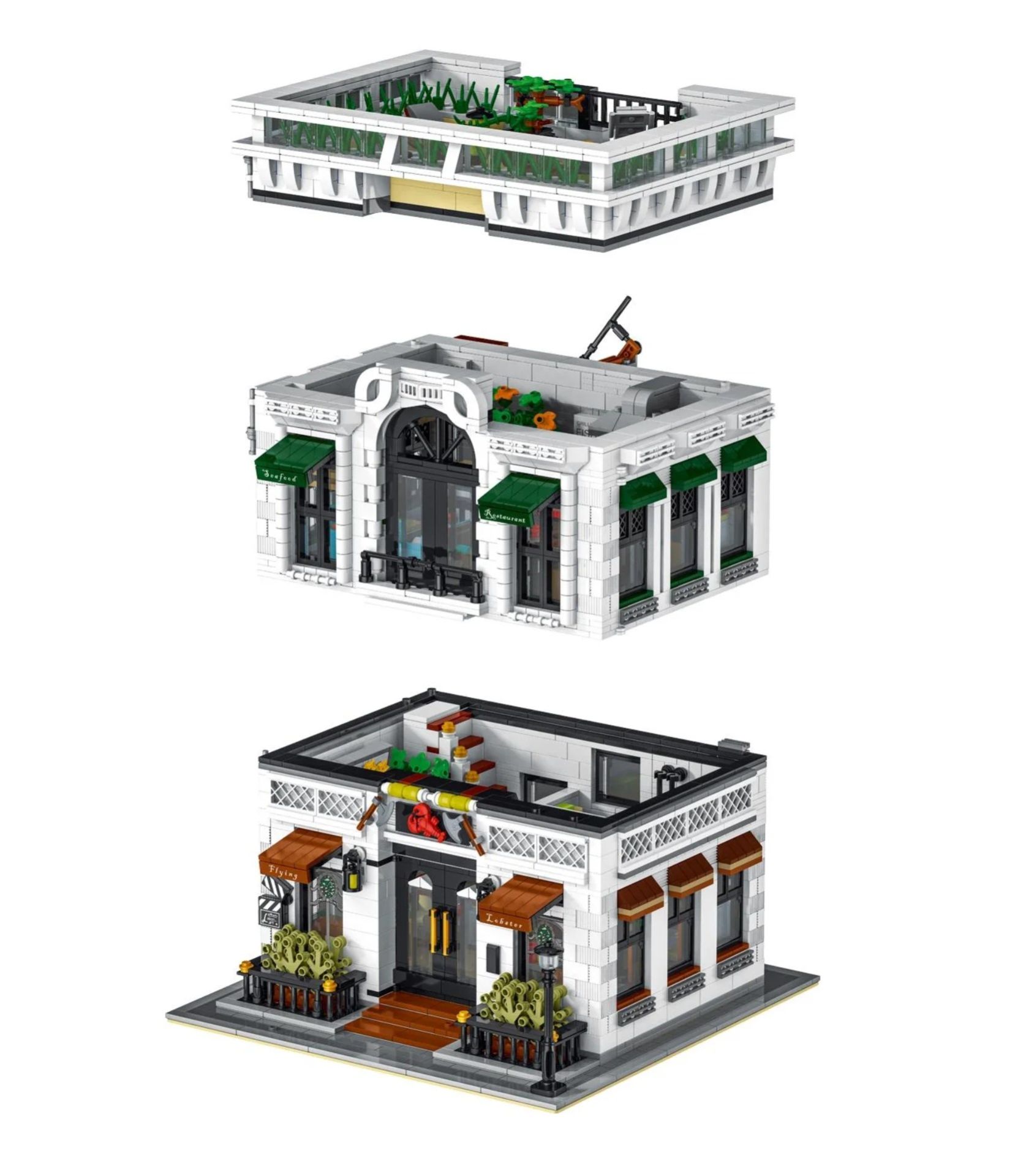 Willkommen im 'Flying Lobster' – dem charmanten Seafood-Restaurant aus Klemmbausteinen, das jede Sammlung bereichert! Dieses liebevoll gestaltete Modell von MORK vereint maritimes Flair mit architektonischer Raffinesse und eignet sich perfekt für alle, die Wert auf kreative Bauprojekte legen.
